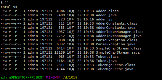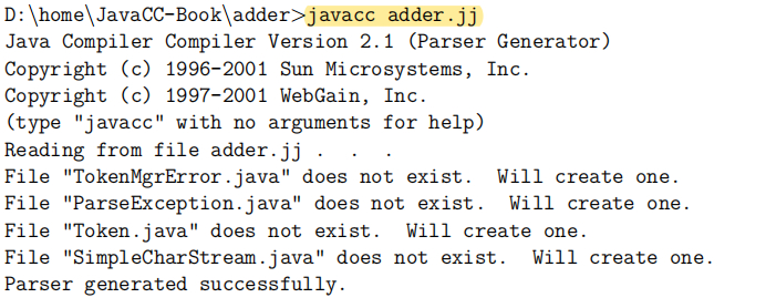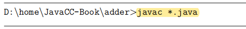 然后在上面调用javacc命令。下面是在windows系统上的演示。